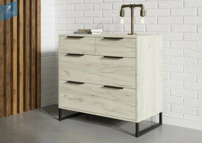 В наличии :ЛОФТ Комод КМ-001 (Корпус - Дуб Крафт белый Фасад ЛДСП - Дуб Крафт белый) Р.850х810х450 Цена:19.500 шариковые направляющие